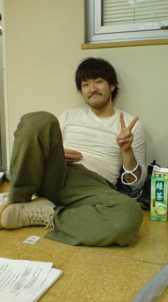 せっかくの稽古場のブログなんで写真をば…と何枚か撮影してたんだけど、NGで使えないものが。あぁ。載せたかったな、あの写真。まさかのあの表情…か、かれがその瞬間!みたいなあの写真。そんな「あの…」が見れるのも本番だけっつーものですよ。おいでやす、こっちゃこいこい、サザンシアターまで。ってことでバトンをじゅんに回します!彼の鋭い視点で、腹がよじれずにはすまない抱腹絶倒のスペシャルブログにご期待ください。写真は今回相方のがけちゃんでございます。でわでわ。